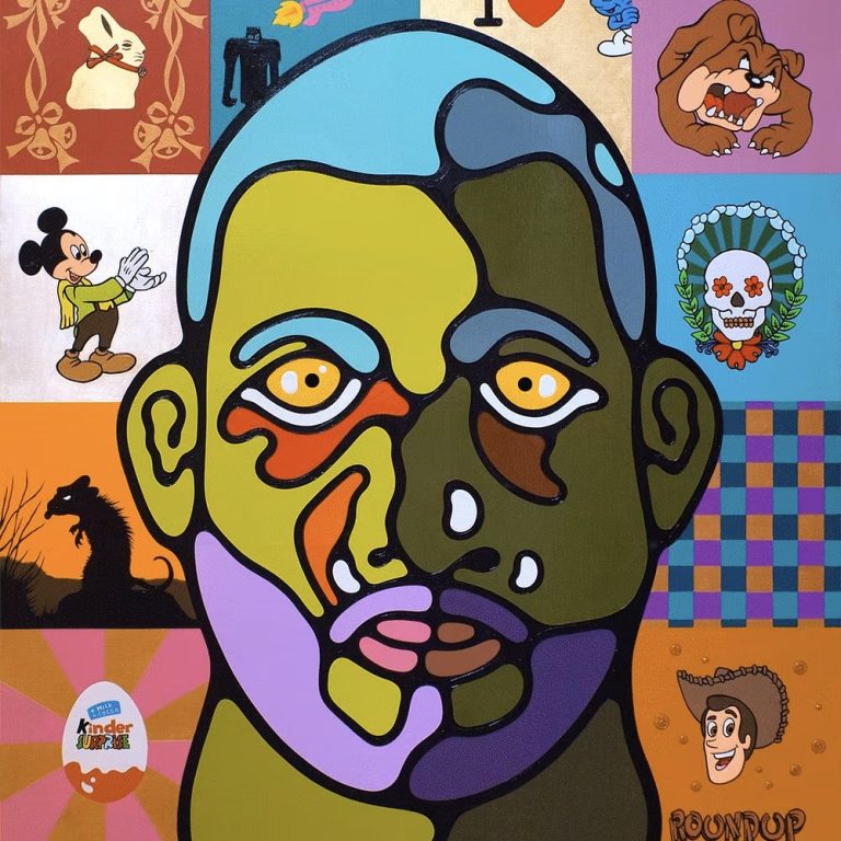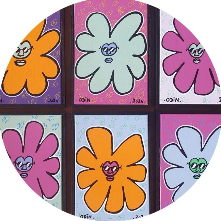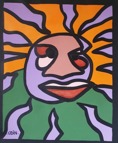 Son univers artistique, entre abstraction et figuration, fusionne influences tribales, art urbain et cubisme. Ses oeuvres, reconnaissables à leurs personnages stylisés et leurs couleurs vives, prennent vie sur toiles, objets et murs. Maîtrisant diverses techniques – acrylique, aérosol, posca, collages et pochoirs – il crée un dialogue entre tradition et modernité. Toujours en quête de nouvelles expériences, Odin continue d’explorer et d’innover, cherchant à faire vibrer le spectateur à travers un art expressif et captivant.