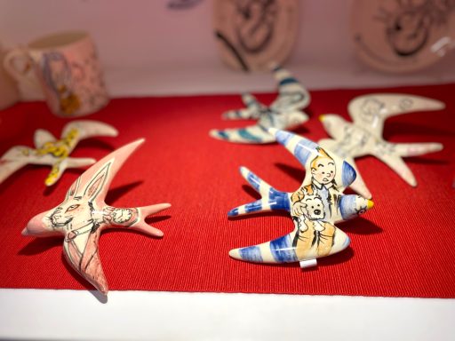 Sophie Sarramégna se définie comme une poétesse urbaine et de la terre, elle s’applique à mettre de la poésie dans son travail artistique. Créer un autre regard sur les gens et les choses. Ses hirondelles en ceramique ou en graffitis voyagent. On peut les suivre sur une google map. Ses influences sont essentiellement des femmes : Niki de St Phalle, Yayoi Kuzama, Frida Kahlo, Vivienne Westwood mais également Keith Harring et Hokusai, les arts premiers dogon, les mangas, les tatouages et la pop culture. Elle s’est artistiquement nourrie au Japon, à New York, en Afrique et à Vallauris. Elle aime les poteries traditionnelles, artisanales, populaires, la delicatesse, l’unique et l’insolite, les fruits écartés du panier car non conventionnels, déclassés qui révèlent parfois des trésors.