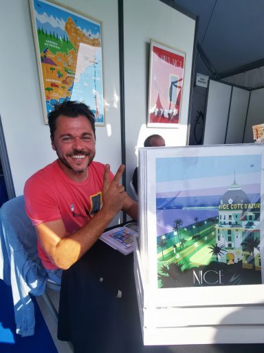 Artiste-affichiste et plasticien né à Nice en 1980. Diplômé de la Sorbonne et de la Skema Business School de Sophia Antipolis en marketing, Eric démarre sa carrière chez Texas Instruments puis rejoint un grand groupe parisien où il prend la direction de l’agence digitale. En 2016, changement de cap, il retrouve la Côte d’Azur, devient artiste-affichiste et commercialise ses créations personnelles. Il est depuis rendu célèbre par la réalisation d’un très grand nombre d’affiches sur la Côte d’Azur et la Provence au style néo-rétro dans lesquelles il cache des détails venant raconter l’histoire de la destination.