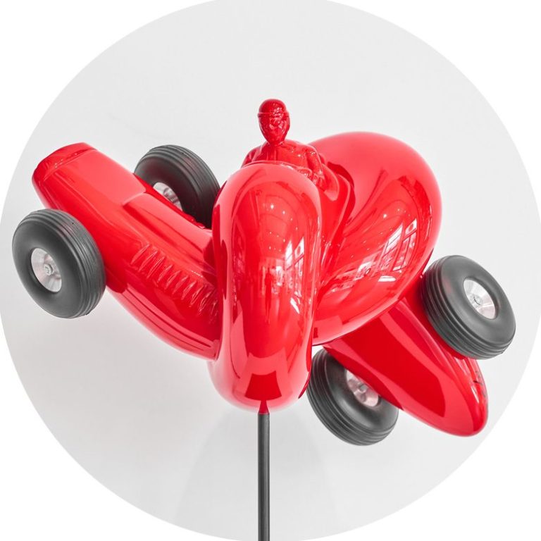 La fusion de cette maîtrise technique et de son expérience de la mécanique, donne naissance à des sculptures inédites dans l’Art contemporain. Des sculptures métalliques, nées du détournement de pièces automobiles, d’une imagination sans limite souvent teintée d’humour, et d’un savoir-faire unique.