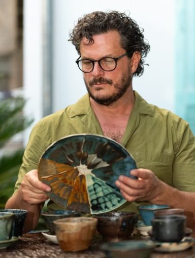 Une toute récente reconversion a amené Benjamin Boucheteil à la céramique. Il a mené sa carrière tant au sein de l’éducation que dans le service public en exerçant 4 métiers différents (enseignant chercheur, chargé de mission développement économique, manager de centre-ville, responsable communication et protocole). Benjamin Boucheteil se révèle aujourd’hui dans un parcours de création artistique qu’il a toujours désiré. Avec la maturité et l’expérience, il se lance donc dans une toute nouvelle aventure pour lui : la céramique.